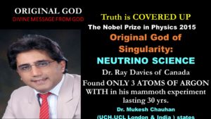 Dr. Ray Davies who won the Nobel Prize for Neutrino research did not know he had accidentally discovered Original God of Singularity. This is the most important scientific conclusion which the world of science does not know. They don’t know this because they do not know the structure and function of Creator or Original God and how HE has made Sun and Universe and all life based on Quantum Code. The power of Original God can be surmised from this feat alone. This knowledge has been completely covered up on Earth by world of religions and devotion. Original God is staring at them and science cannot see it. They must be blind.