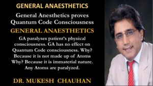 General Anaesthetics proves Quantum Code consciousness. Why? During general anaesthetics, patient’s body is paralysed. Patient’s lose their consciousness. What scientist’s do not know is that patient’s lose their physical consciousness, patient’s do not lose their Quantum Code consciousness because it is not made up of any atoms. It is immaterial nature which saves patient’s lives once general anaesthetics surgery is completed. Only Atoms in the body and brain are paralysed. Neuron’s are paralysed. Neuron’s are made up of Atoms. Therefore neuron’s are not conscious.It is the nature of sub-atomic particles in Quantum Code which saves patient’s lives once they have completed their operations.