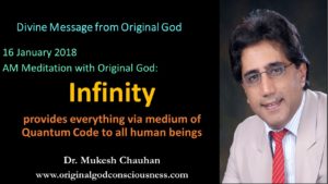 Our Creator or Original God is Infinity. It is Infinity who provides every human beings needs on Earth via the medium of Quantum Code made by Infinity before Scientists Big Bang. Trouble is human beings can’t see their Quantum Code. Because they can’t see their Quantum Code they cannot see Infinity who shines in all HIS glory in the deepest layer of every human life. Original God is watching and controlling everything in all human beings at the same time. Perfect example of Holography in action.